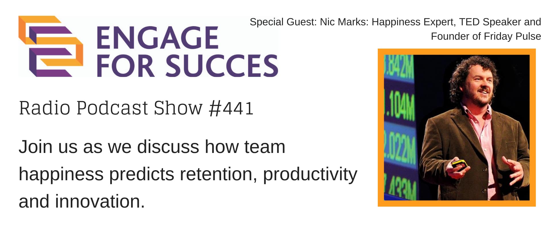 Introducing *Nic Marks*, statistician, author, TED speaker and founder of Friday Pulse. Nic specializes in using the science of wellbeing to help individuals, businesses, and governments to track happiness.